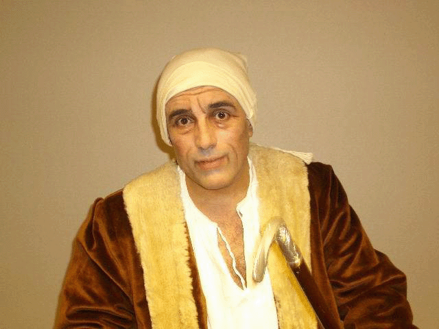 les yeux) suggère la farce. Père de famille égoïste et crédule, il est dans