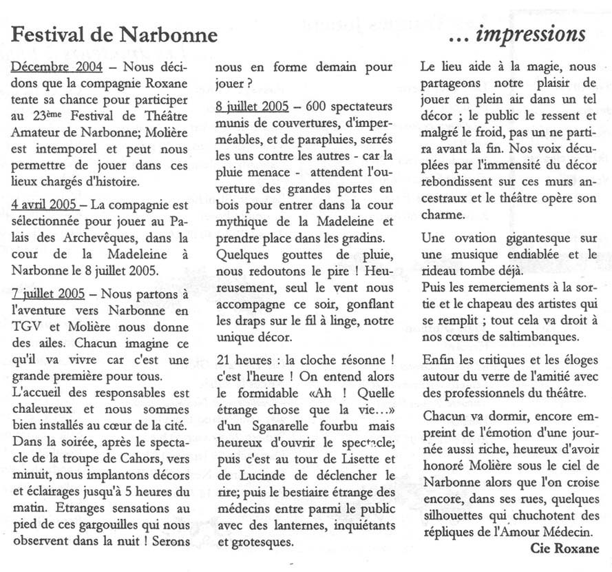 L'Amour Médecin de Molière 23ème Festival National de Théâtre Amateur de Narbonne (2005)